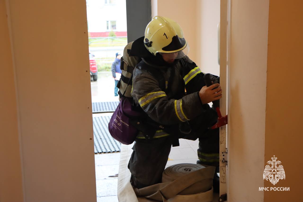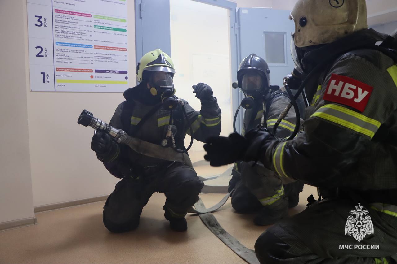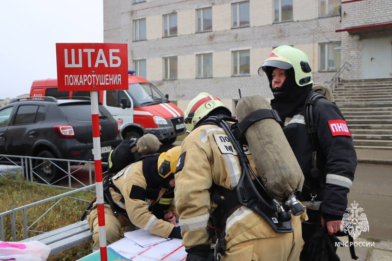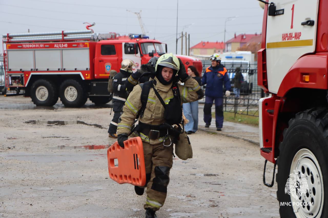 Масштабные учения прошли сегодня в лабораторно-диагностическом комплексе Ненецкой окружной больницы имени Р.И. Батмановой. По легенде учений, в результате атаки беспилотного летательного аппарата произошёл пожар в кабине лифта на пятом этаже комплекса.
