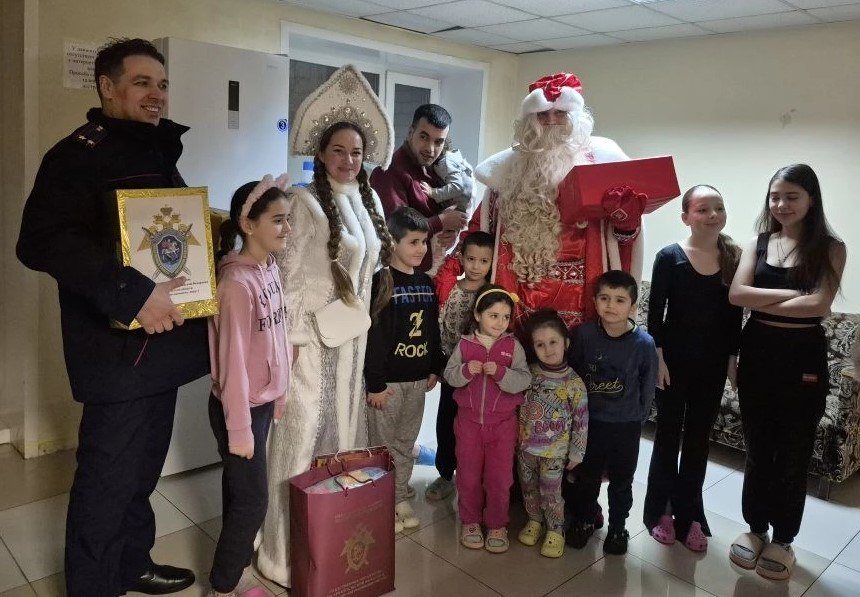 Офицеры следственного управления Следственного комитета Российской Федерации по Архангельской области и Ненецкому автономному округу в костюмах Деда Мороза и Снегурочки поздравили детей из семей, прибывших в город Архангельск из новых регионов Российской Федерации, и беженцев из Сирии.