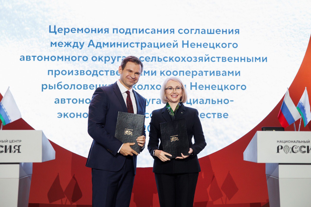 В рамках выставки «Регионы-2030. Платформа Будущего» подписано соглашение между Администрацией НАО и семью рыболовецкими колхозами региона о социально-экономическом сотрудничестве на 2025–2030 годы. Его цель — обеспечить стабильную работу рыбохозяйственного комплекса региона, повысить социальную защищённость трудовых коллективов в условиях рыночной экономики.