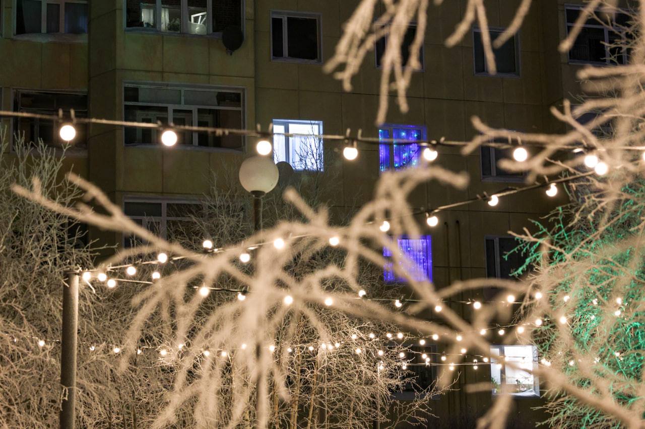 В Литературном сквере Нарьян-Мара появилась праздничная подсветка