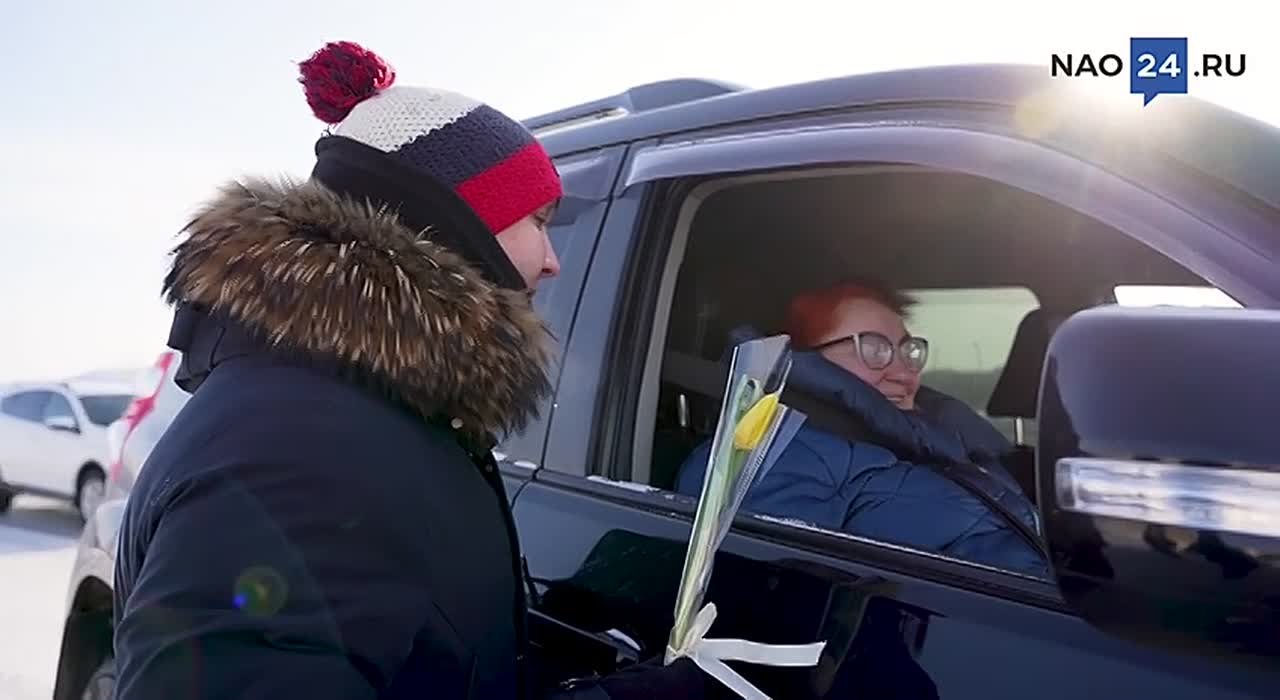 Инспекторы останавливали автомобили, за рулём которых находились женщины, а вместо проверки документов дарили им цветы и поздравляли с праздником.