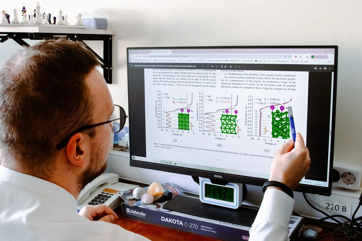 Специалисты Саратовского национального исследовательского государственного университета установили, что способность гафния «испускать» электроны зависит не только от его состава, но и от внутреннего строения. Меняя кристаллическую структуру и добавляя отдельные атомы, можно управлять этим процессом, а значит, повышать эффективность работы электронных приборов — от микроволновых усилителей до спутниковой связи.