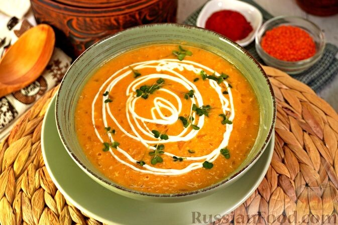- Фёзелек из красной чечевицы — этот венгерский суп порадует своей насыщенностью и ярким вкусом. Приготовленный на основе красной чечевицы и обжаренного лука с паприкой, он дарит ощущение тепла и уюта. Сметанная заправка с лимонным соком и горчицей сделает блюдо по-настоящему запоминающимся.
