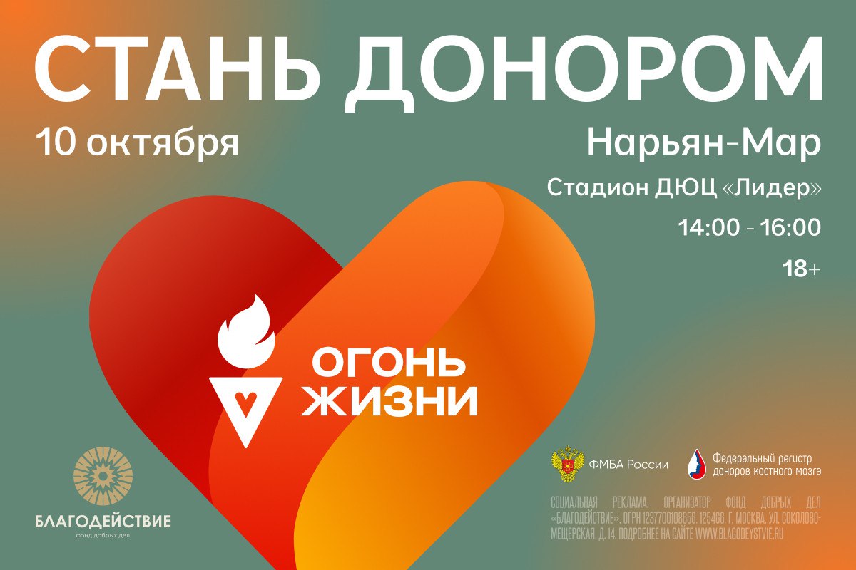 В Нарьян-Маре 10 октября в 14.00 на стадионе ДЮЦ «Лидер» представители власти, почётные доноры и волонтёры пронесут факел. Цель акции — привлечь новых доноров костного мозга.