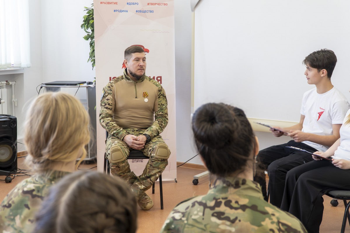 С учениками школы №2 встретился участник специальной военной операции Алексей Рубцов.