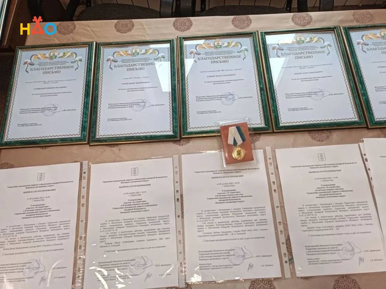 Начальник Управления гражданской защиты и обеспечения пожарной безопасности НАО Александр Димитриев отметил благодарственными письмами жителей поселения.
