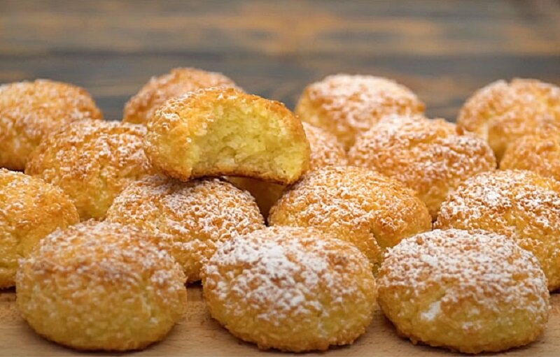 Чуть остывшие печенья посыпать сахарной пудрой. Это лакомство отлично сохраняет свежесть, поэтому его можно готовить заранее.