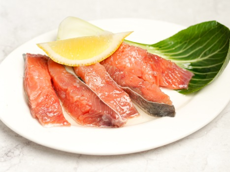 Засолка: Нарежьте подготовленную горбушу на кусочки шириной около 5 см и погрузите в рассол. Для наилучших результатов рекомендуется оставить рыбу на 30 минут, однако, если предпочитаете менее соленый вкус, можно обойтись и 8-15 минутами.