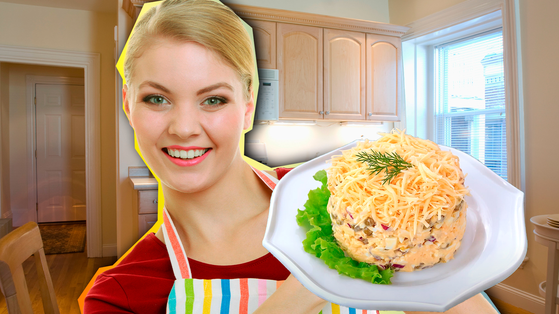 Салат «Чайка» много лет был главным украшением праздничного стола, пока с пьедестала его не сместил оливье. Однако пора возродить старую добрую традицию, ведь блюдо еще и максимально бюджетное. Вам понадобятся: