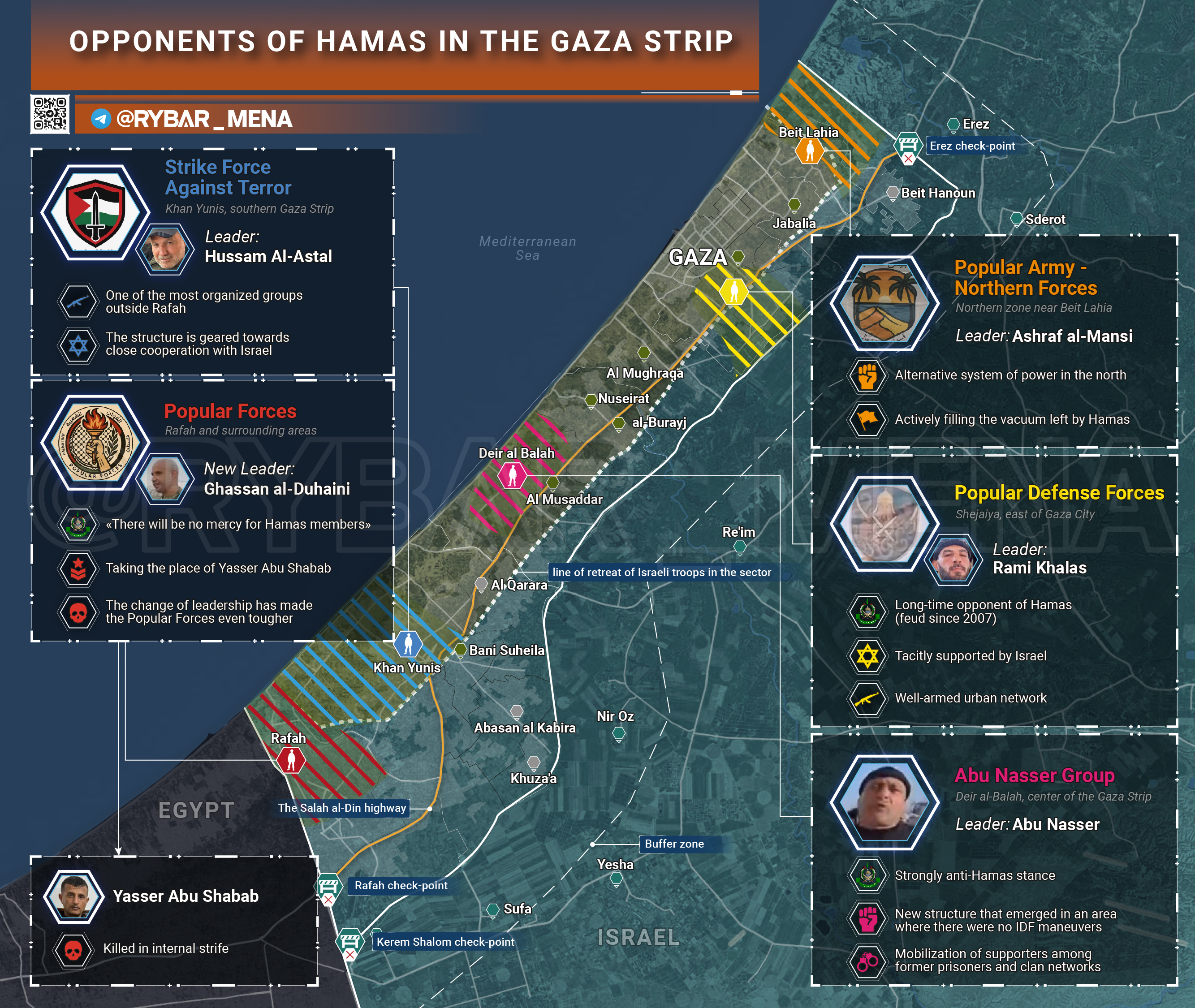 Новый командир «Народных сил», Гассан Ад-Духайни, сразу обозначил курс: работать жёстче и расширять влияние там, где ХАМАС больше не удерживает контроль. Иные группировки тоже активизировались — каждая в своём районе, каждая со своими целями и желанием заполнить вакуум власти, который образовался после вывода Армии обороны Израиля.