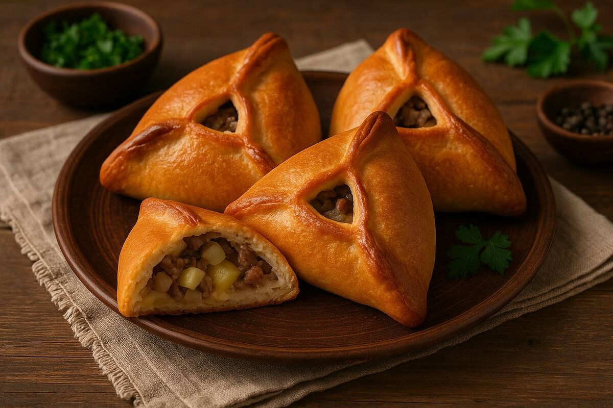 Эчпочмак, переводящийся с татарского как «треугольник», представляет собой открытый пирожок, приготовленный из дрожжевого теста. Он сытно начинен мелко нарезанным мясом, картофелем и луком. Уникальное «окошко» в центре не только визуально привлекает, но и выполняет функцию. Во время выпечки туда добавляют бульон, позволяя начинке оставаться сочной и ароматной. Эчпочмак традиционно готовят на праздниках, но его можно легко приготовить в будний день, чтобы порадовать близких. Запах этого блюда мгновенно собирает всю семью на кухне!