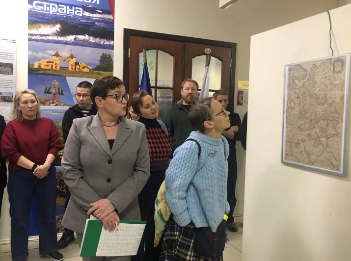 Пространство, расположенное в фойе музея, знакомит посетителей с богатой историей, деятельностью и достижениями старейшей географической организации страны.