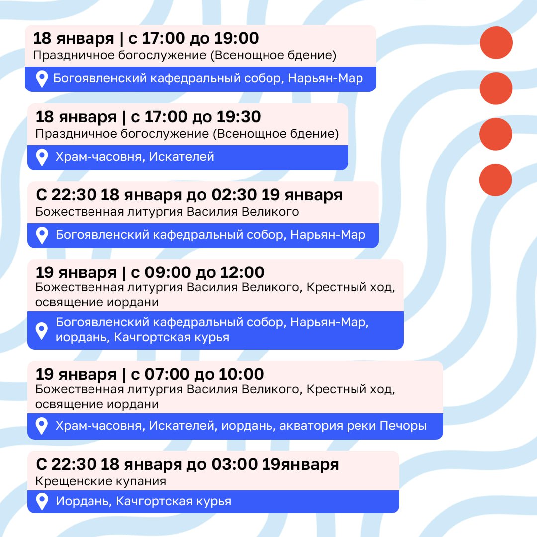 В Крещенский сочельник и Крещение Господне в Нарьян-Маре и Искателей состоятся праздничные мероприятия