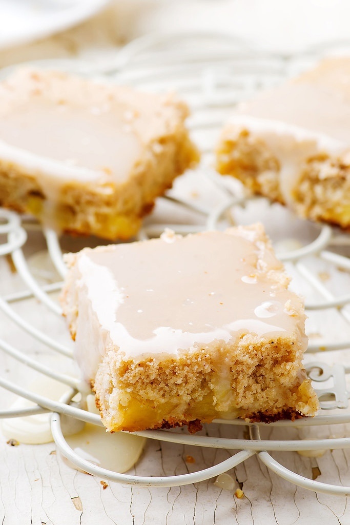 4. Для глазури соедините сахарную пудру с молоком и 1 ч. л. ванильного экстракта, взбейте до однородного состояния. Полейте остывший пирог полученной глазурью и подавайте теплым. Этот десерт обязательно порадует вас своим вкусом и ароматом!