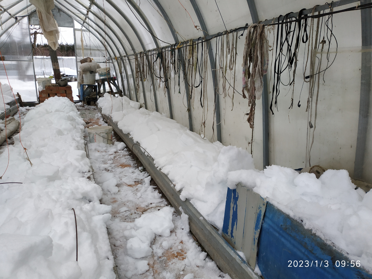 Снег обычно вносят в теплицу в начале января, не уплотняя его, что позволяет сохранить тепло. Важно помнить о подготовке бороздок под семена и укрытии их после посева. Весной снег постепенно тает, и земля становится готовой для посадки без дополнительного полива.