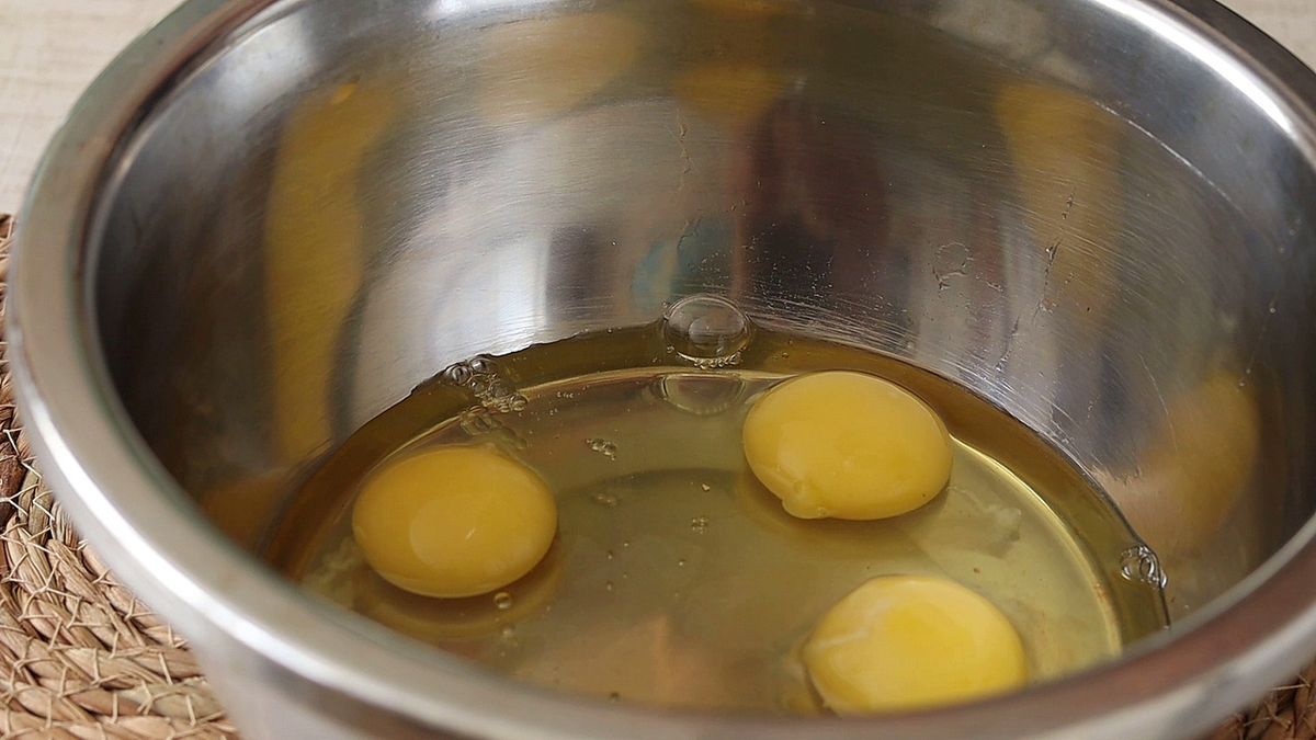 - Разбейте в посуду 5 яиц.