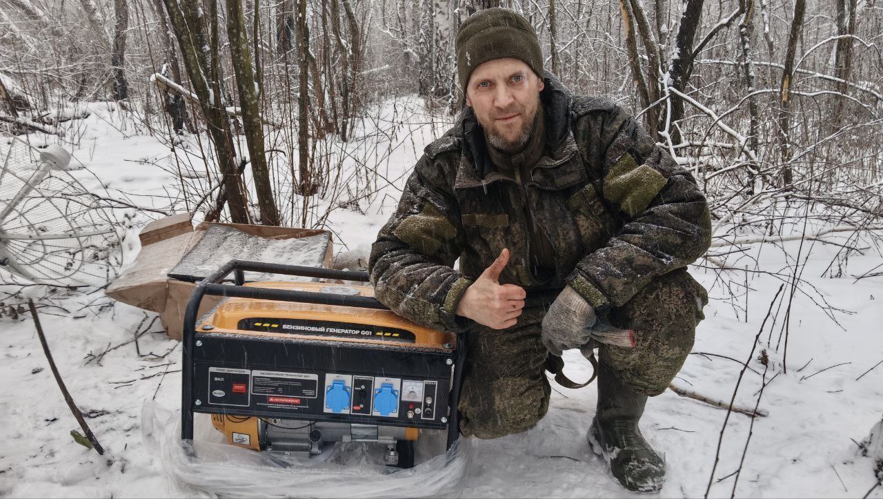 Участник СВО с позывным "Стрелец" получил генератор на подразделение, а бойцу с позывным "Солнце" передали генератор и утеплитель для блиндажей.