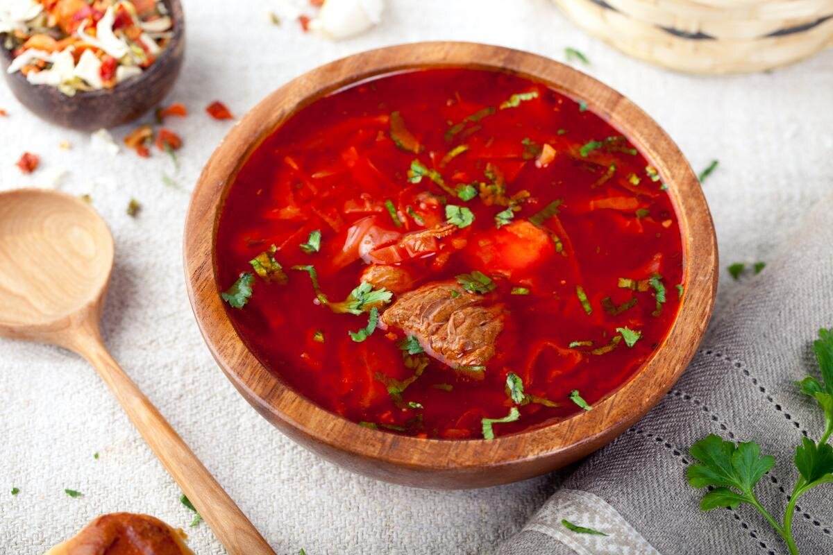 Главная роль здесь принадлежит свекле. Выбор сорта, момент добавления и техника обработки напрямую влияют на итоговый тон бульона. Лучшее красное полотно рождается из темной, почти черной свеклы, которая легко окрашивает бульон и держит цвет в процессе варки.