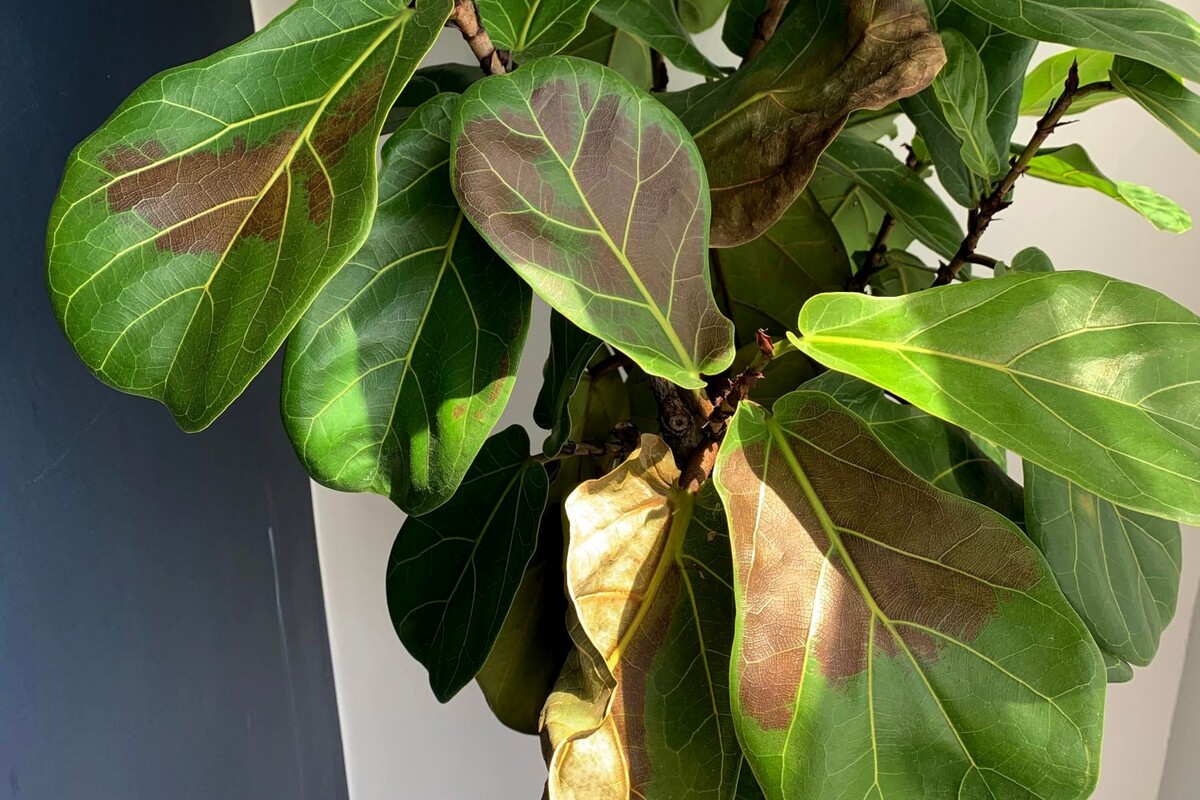 Зимой на листьях фикуса появляются коричневые участки, и их развитие часто объясняется не болезнью, а изменениями в условиях содержания. В первую очередь растение чувствительно к низким температурам и сухой атмосфере, которые дают двойной удар по корням и листьям.