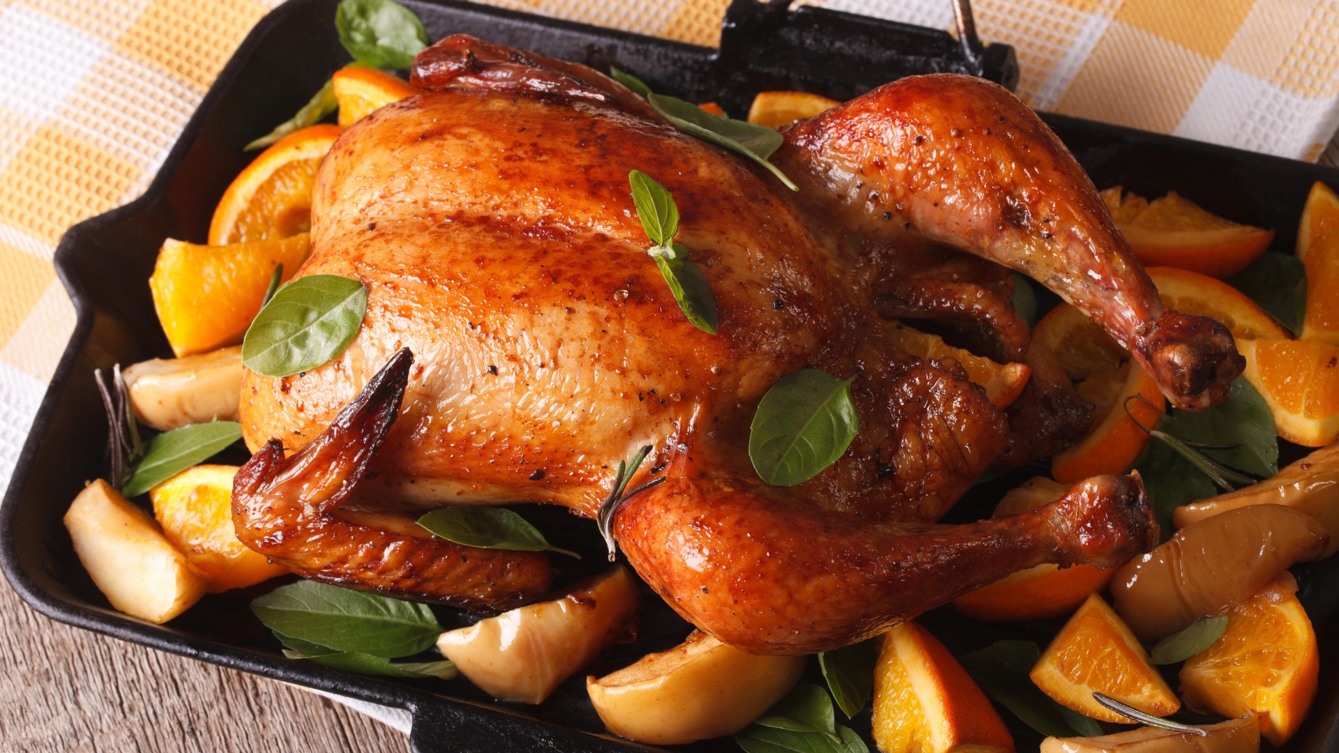 Через 15 минут убавьте температуру до 180 градусов и запекайте еще примерно час. Готовое блюдо украсьте апельсиновыми дольками и подавайте на стол, пишет журнал TutKnow.
