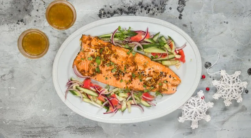 Запеченная форель, поданная с хрустящим огуречным салатом, представляет собой гармоничное и изысканное блюдо, которое идеально вписывается в концепцию здорового питания. Эта рыба, богатая полезными омега-3 жирными кислотами, становится невероятно нежной при запекании, а свежий салат из огурцов придаёт блюду дополнительную лёгкость и свежесть.