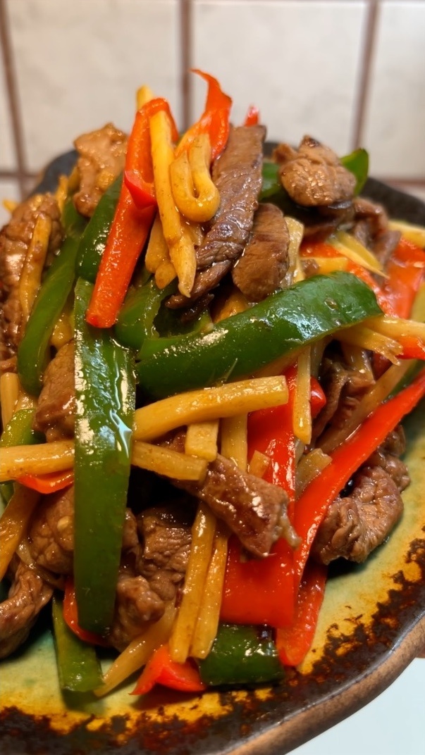 Как приготовить бамбуковые побеги с говядиной и перцем по-японски