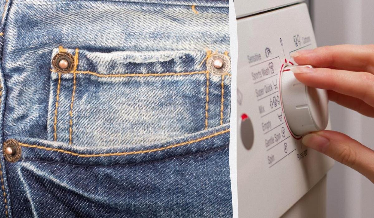 - Проверьте карманы. Убедитесь, что они пусты, чтобы избежать загрязнений от оставленных предметов, таких как конфеты или салфетки. Металлические предметы могут не только испортить джинсы, но и повредить стиральную машину.
