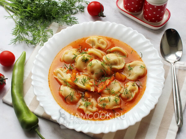 Приготовление супа с пельменями может занять всего полчаса, а если немного поторопиться, и того меньше. Этот наваристый и ароматный суп прост в приготовлении и вкусный. Основу блюда составляют свежие овощи, щепотка специй и любимые пельмени. Чтобы придать ему колорит, можно интриговать близких, назвав это блюдо почти 'Чучвара' – так все почувствуют близость к восточной кухне.