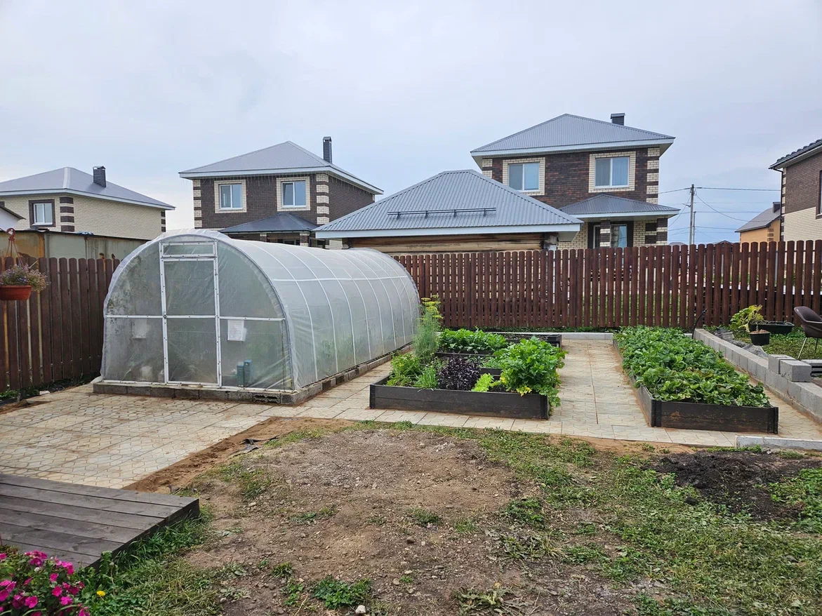 Внутри огородной зоны действительно присутствует элемент старины — простая теплица, приобретенная три года назад. Размером 6 на 3 метра, она выглядит довольно скромно, обшита плёнкой и стоит на шлакоблоках. Признаются, с эстетической точки зрения, она отстает от современного стеклянного аналога, но ее стоимость слишком высока для бюджета, который также требует вложений в другие важные элементы участка.