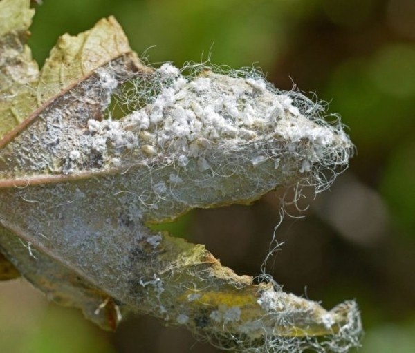 Наиболее заметным из вредителей является белокрылка земляничная. Это крошечная бабочка, не превышающая 1,5 мм в длину. Она предпочитает скрываться на нижней стороне листьев, где высасывает сок, устремляя весь свой урон на «потемнение» здоровья растения. Избегая солнечного света, белокрылка ищет укрытие в затенённых участках, откладывая свои яйца на нижней поверхности листьев.