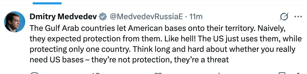 «Американские базы — это не защита, а угроза». Дмитрий Медведев заявил, что страны Ближнего Востока опрометчиво считали размещение американских баз гарантией безопасности — всё вышло с точностью до наоборот.