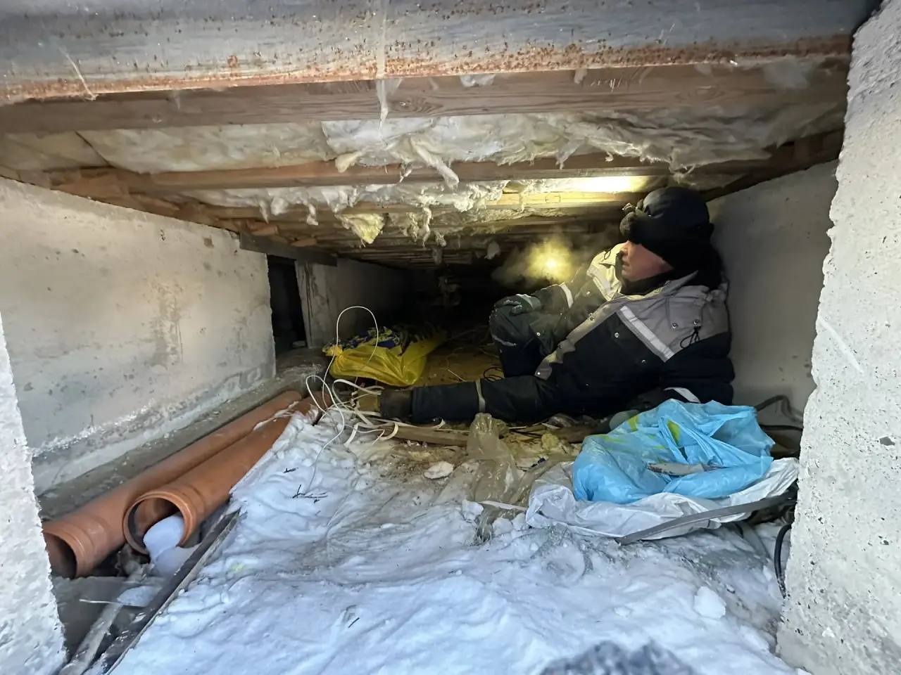 Коммунальная авария произошла из-за сильных морозов. Администрацией посёлка Искателей были организованы работы по отогреву водопроводов.
