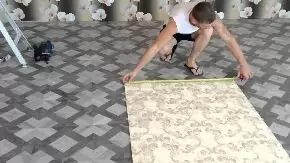 Затем нарежьте полосы с запасом по длине и подсоедините их, если есть рисунок. Далее приготовьте клей, следуя инструкциям на упаковке.