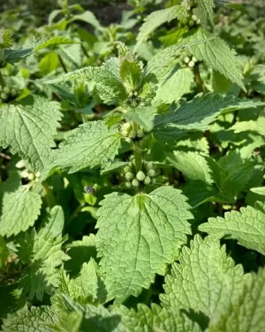 Яснотка белая (Lamium album) не имеет родства с крапивой, принадлежа к семейству яснотковых. Её листья скорее напоминают мягкие и закруглённые зубцы, а стебель покрыт коротким густым ворсом. Обращая внимание на верхушки, можно заметить мутовки белых цветов, которые появляются значительно раньше, чем цветы крапивы.