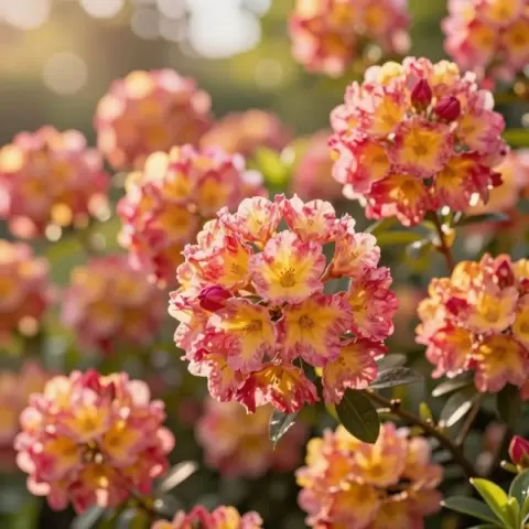 - Рододендроны — цветут в мае-июне, обрезка весной может скрыть цветы. Уход лучше сводить к мульчированию и подкормке.