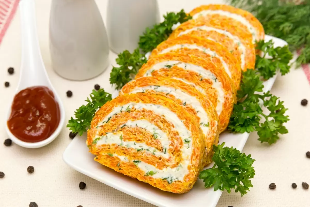 Сложно представить более привлекательное угощение для праздничного стола, чем морковный рулет. Эта изысканная закуска удивляет нежностью и кремовым вкусом, акцентированным нотками чеснока. Представьте себе, как вы прогуливаетесь по свежему летнему саду после дождя, наслаждаясь запахом свежей травы и лёгкого тепла. Такой рулет станет не только украшением любого застолья, но и отличным выбором для буднего дня, когда захочется порадовать себя чем-то необычным.