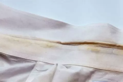 - Со временем эти вещества проникают в структуру ткани, особенно в чувствительных зонах, таких как подмышки и воротник, что приводит к непривлекательному внешнему виду.