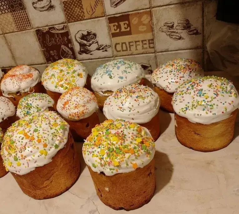 Остывшие куличи украсить глазурью или посыпкой по желанию.